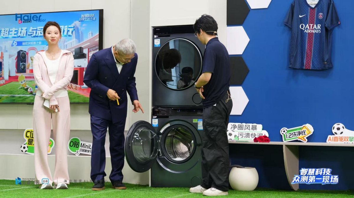 在抖音渠道,海尔邀请刘建宏化身“海尔AI科技体验官” 坐镇超级品牌日直播间,激情开麦。用户可直观看到“极速锁鲜的冰箱”“洁净护衣的洗衣机”如何深度服务球员日常,实现品牌理念与产品功能的双重种草。面向抖音海量用户流量,海尔携手“与辉同行”“东方甄选”等头部 IP在直播间进行直观产品演示,既提高产品曝光率,又增强品牌好感度和用户信任感。