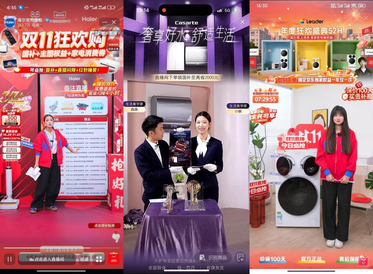 今年双11,直播仍是消费增长核心引擎,家电赛道竞争尤为激烈。海尔交出亮眼成绩单:凭借多IP、多平台的深度联动与创新玩法,摘得京东、天猫、抖音大家电直播榜TOP1。其之所以能精准触达用户、高效激活消费潜力,核心在于内容、形式与科技融合的系统性布局与长期深耕。