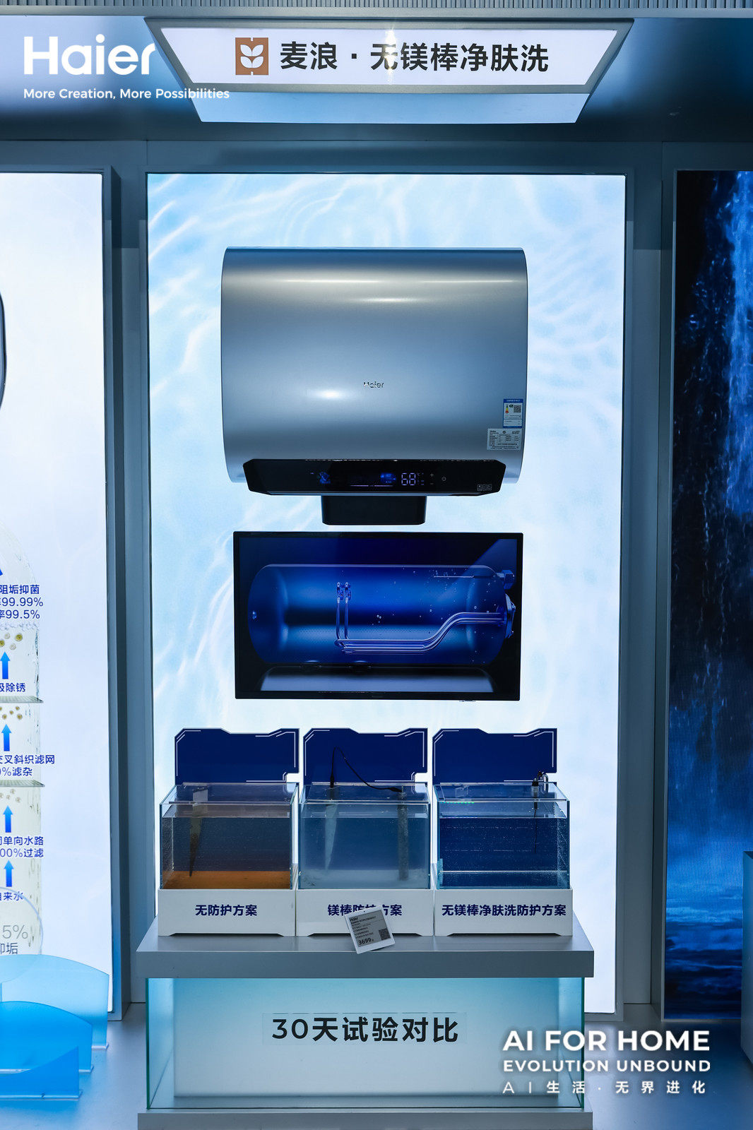 而海尔无镁棒净肤洗热水器则用AI净护芯替代传统物理镁棒,从根源杜绝镁渣产生。通过智能控制精准释放电子,AI 净护芯能在内胆和加热管表面形成致密防护膜,实现长效防腐。同时搭配FOF抑垢因子从源头阻止水垢生成,热水器阻垢率高达 99.5%,抑菌率达 99.99%,保障出水洁净,彻底告别水垢、镁渣带来的皮肤困扰,让每一次沐浴都安心健康。