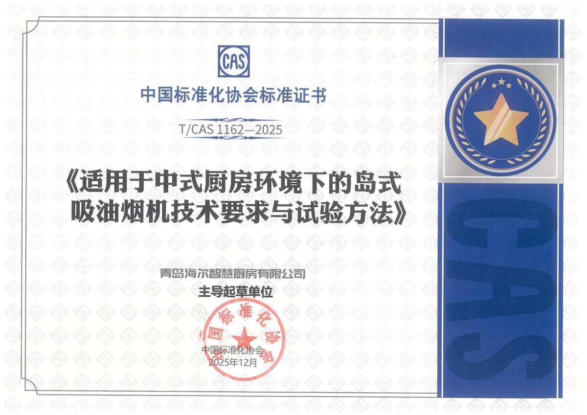 (原标题:卡萨帝厨电牵头制定中岛烟机标准,填补行业空白)