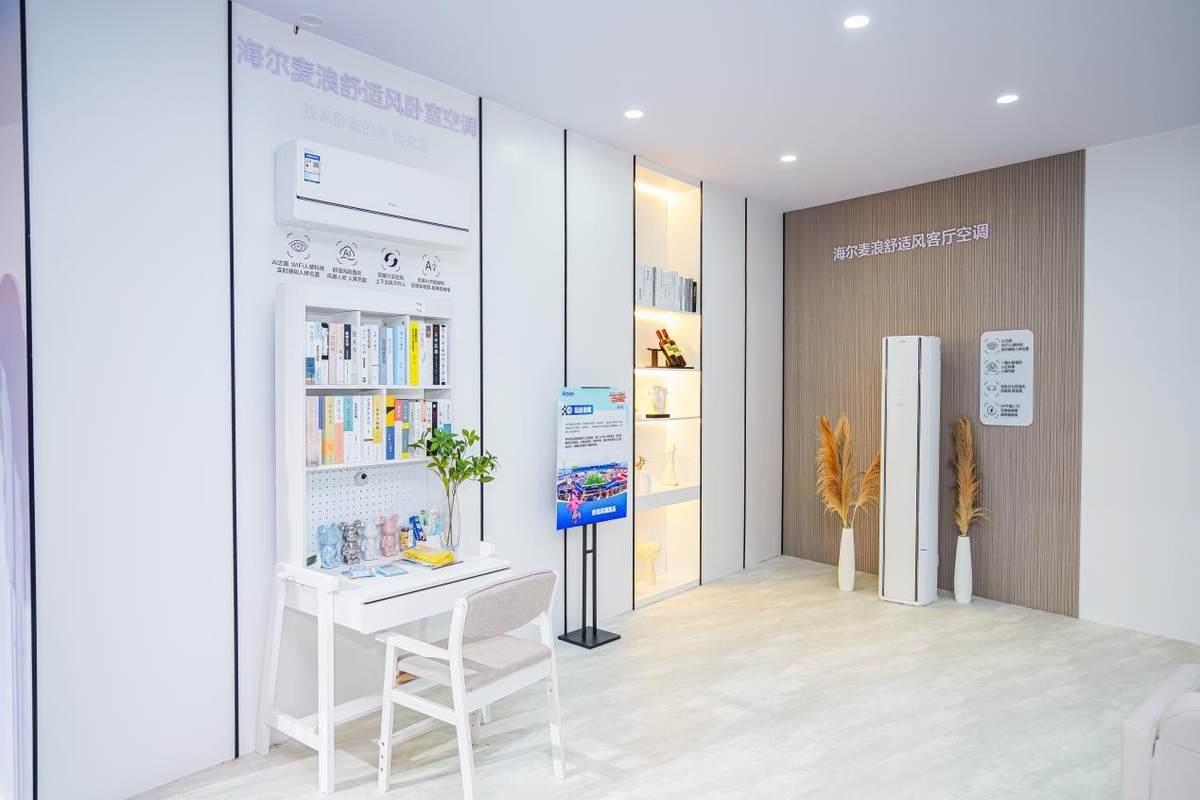 怕空调直吹着凉?海尔麦浪舒适风空调直接“读懂”呼吸 —— 挂机靠 WiFi 人感避人吹,柜机 Pro 款更用 UWB 雷达盯着胸腔起伏,哪怕睡着后呼吸变缓,风也会悄悄调柔。现场有妈妈抱娃靠近,原本稳定的风瞬间变柔,离开后又默默回温,像有双“护风的眼”,再也不用提心吊胆。