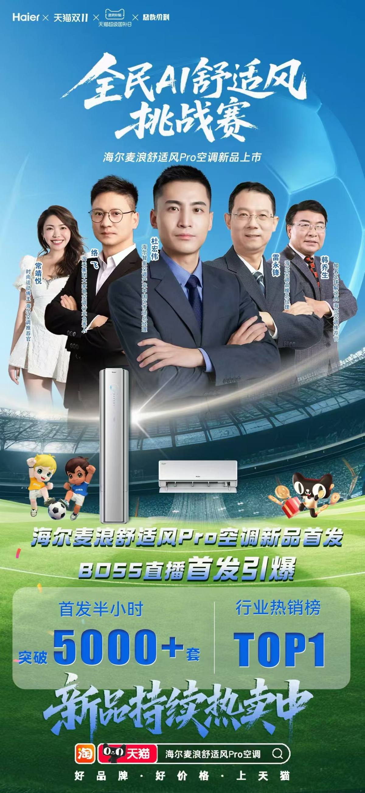 还在为空调直吹不舒服而烦恼?今年双11,一款“可感知呼吸”的空调成了不少人的新选择!10月25日,海尔麦浪舒适风Pro空调新品在天猫首发。据平台数据显示,该新品首发半小时销量即突破5000+套,登顶行业热销榜TOP1,上市即受市场欢迎。