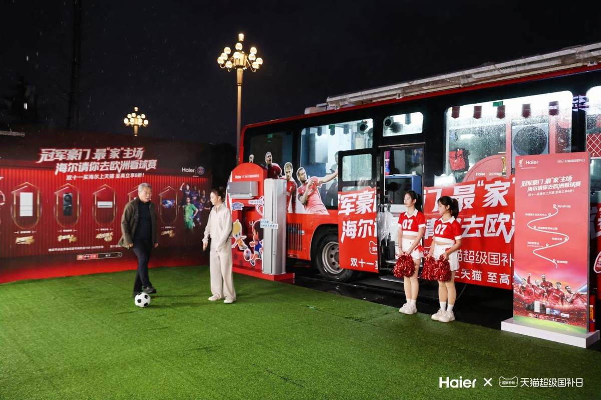 线下场景重构消费空间:长沙、北京等地铁站内,海尔与利物浦、巴黎圣日耳曼联合打造的创意海报,成为早晚高峰汹涌人流中的“视觉焦点”;在长沙,承载冠军单品的冠军球队大巴穿梭于各大热门景点,成为移动的风景线。当消费者行走在被海尔品牌视觉包围的地铁通道,或是偶遇穿梭于城市中心的冠军大巴时,品牌已然从家电卖场走进了消费者的生活空间。