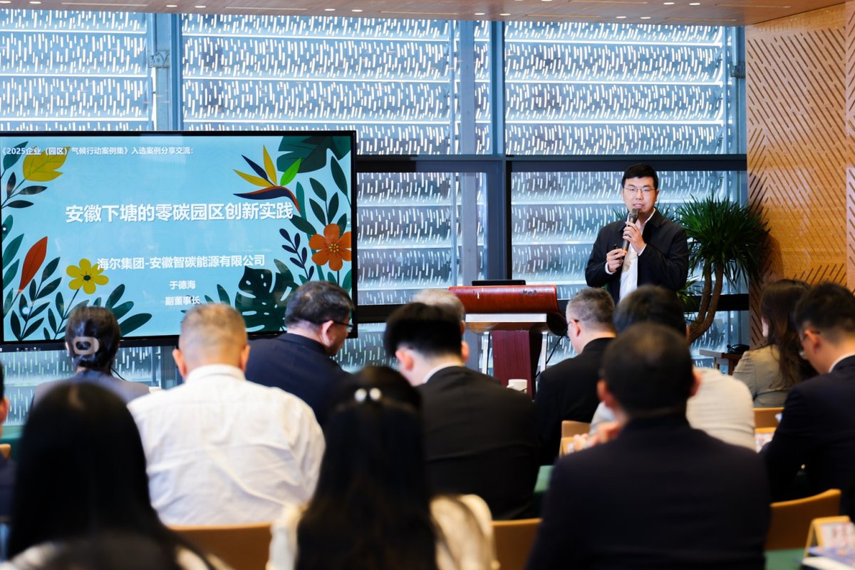 《案例集》共收录案例27个,以中英文双语形式面向国际社会发布,为全球绿色低碳转型合作注入了中国力量。其中,由卡奥斯COSMOPlat参与打造的“安徽下塘的零碳园区创新实践”项目成功入选。同时,在18日于深圳举办的“企业气候行动公共叙事暨2025企业气候行动案例交流活动”上,项目有关负责人也受邀来到现场,分享了平台助力长丰县下塘工业园区绿色转型、打造零碳园区的探索与实践。