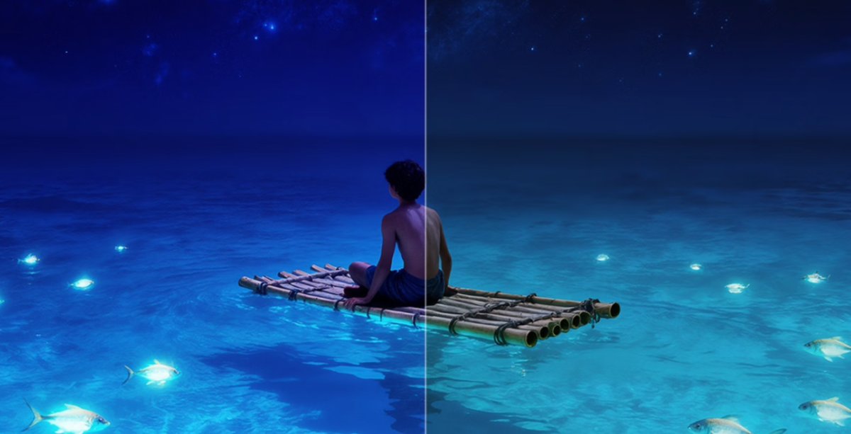 大屏容易发糊的根源,在于分区控光粗糙,该亮的亮不起来、该暗的暗不下去,呈现爆破、外太空、赛博朋克等大光比场景,更是“灾难”。