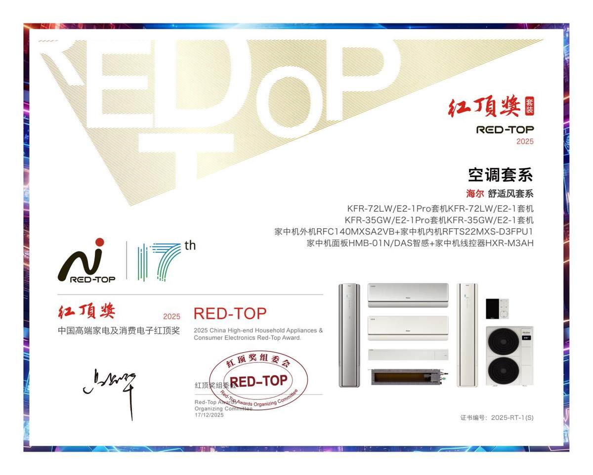 12月17日,家电行业“红顶奖”获奖名单揭晓。空调类奖项中,多数品牌以“明星单品”登榜,聚焦于更强制冷、更省电、更静音等单点突破。而海尔空调,成为本届唯一以“全屋空气解决方案套系”获奖的品牌。
