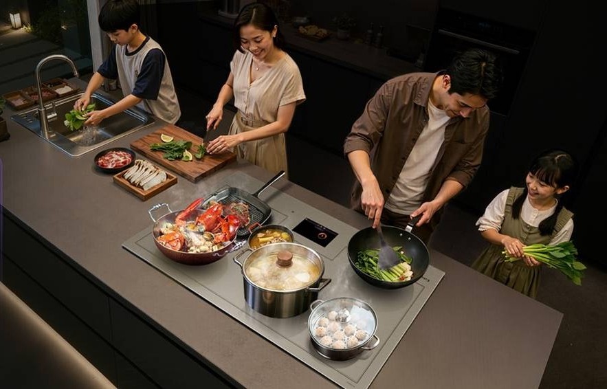 在2026海尔厨电全嵌家族新品发布会上,卡萨帝厨电推出的国内首款全域加热电磁灶,正在改变这一现状。这款打破传统炉头数量限制的新品,将整个台面变成可加热区域,最多能同时放置6口锅,让“数着炉头做饭”的日子成为过去。