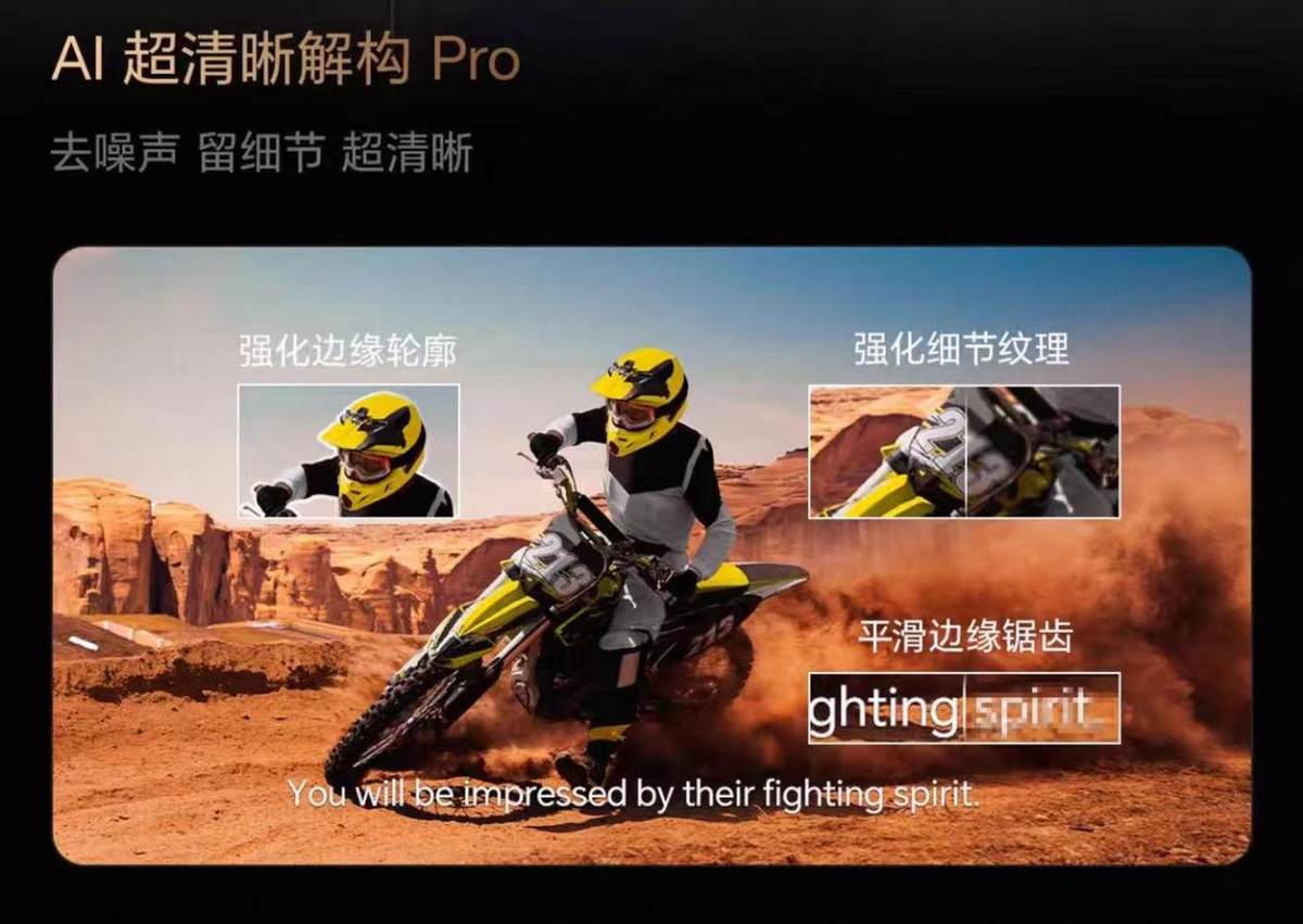 海信100吋E8S Pro搭载的信芯AI画质芯片 H7,打破了这一僵局。作为中国自主研发的光色同控芯片,它以2TOPS算力实时识别场景,精准捕捉光影与色彩变化。雪地场景中,智能校准白平衡,让纯白不刺眼、阴影有层次;复杂光影下,通过AI光色精控还原原生肤色,面部细节清晰可辨。