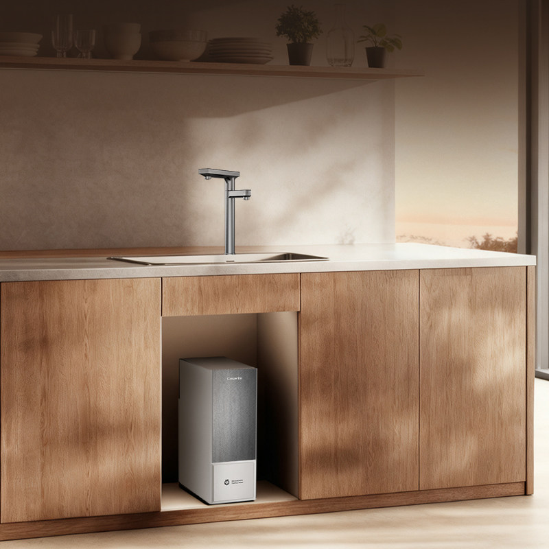 三种水质还通过独立水路和智能切换系统实现了互不干扰,用户只需点击屏幕,就能自由切换不同水质,厨房里再也不需要堆砌多台净水设备。忙着做饭时,只要在水龙头上挥挥手,就能自动出水,不用担心手上的油渍、水渍沾到机器上。