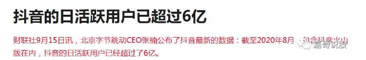 除了这个消息之外,抖音也公布了国内的数据,截至2020年8月,包含抖音火山版在内,抖音的日活跃用户已经超过了6亿。这无疑是一个很不错的数字。