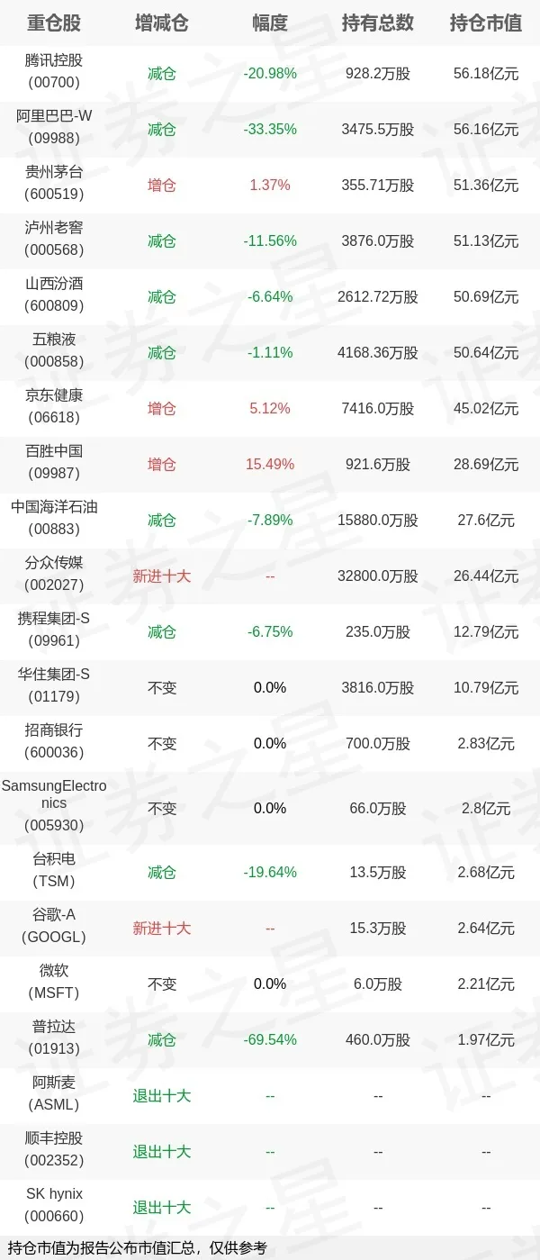 此外,张坤还进一步配置与消费密切的分众传媒,使之新进十大;增持京东健康、百盛中国等,大幅减持普拉达(-69.54%);科技股方面,则新进软件公司谷歌,持有微软,减持硬件制造公司台积电等。