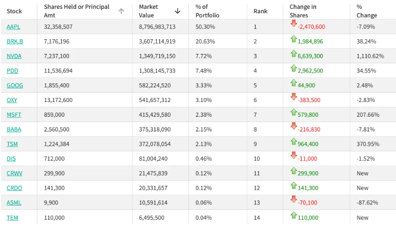 值得注意的是段永平的苹果持仓。